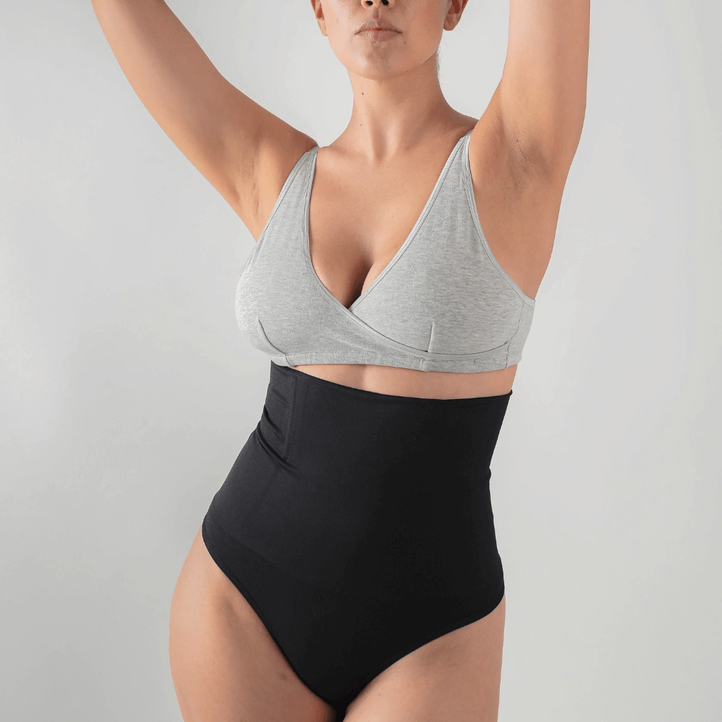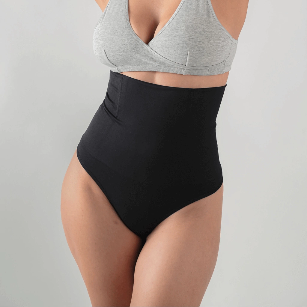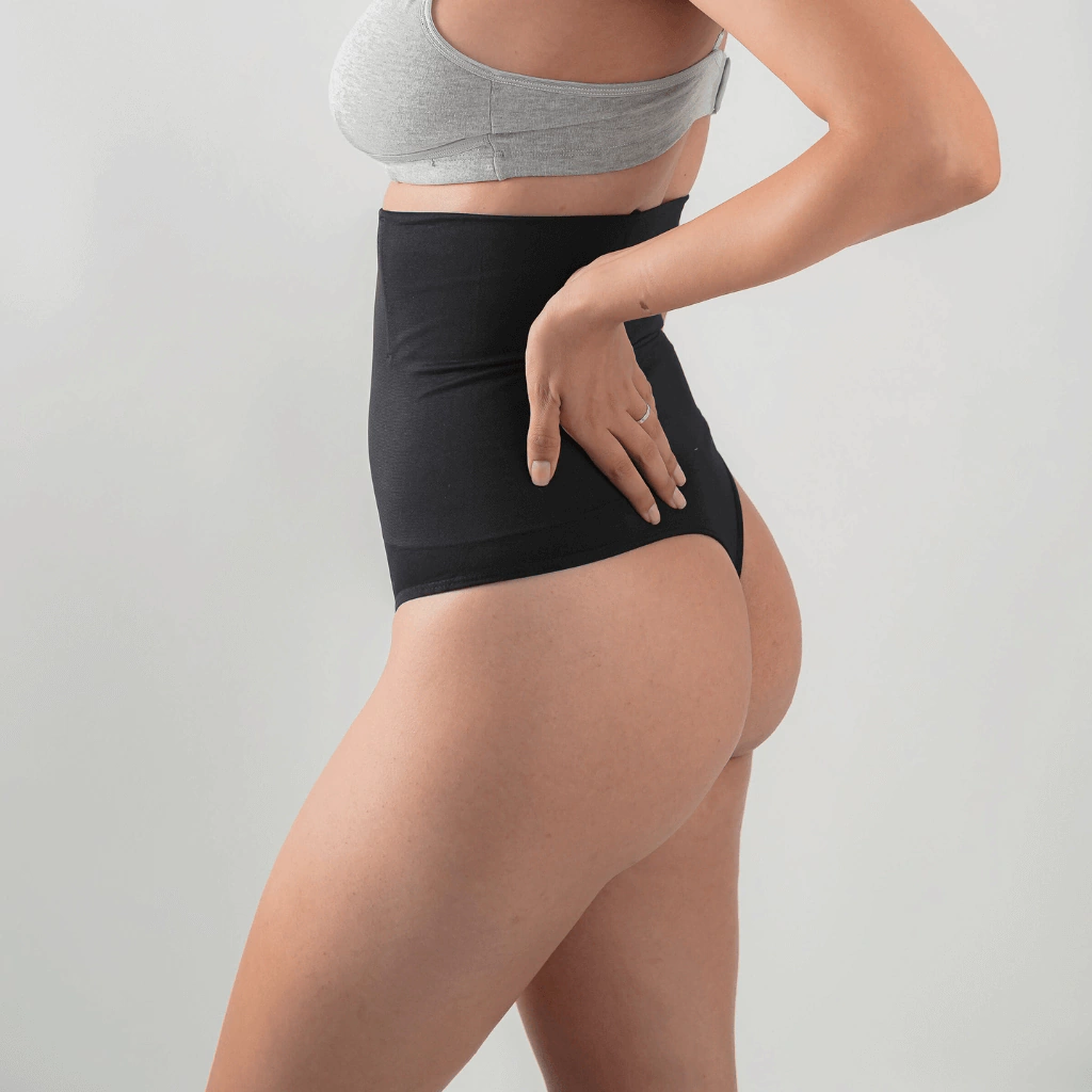 Bombacha tipo trusa de carácter faja, con terminación de tiro súper alto y corte colaless.